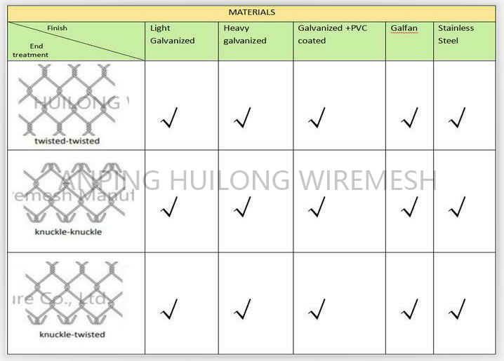 According to the different rusty resistance ability, Chain link fence coatings come in galvanized, aluminized, galfan, or galvinal versions. Vinyl/polymer coatings come in green, brown, and black. If you need a custom color, ask us about creating a custom order and we’ll do our best to accommodate, although not every color is possible.